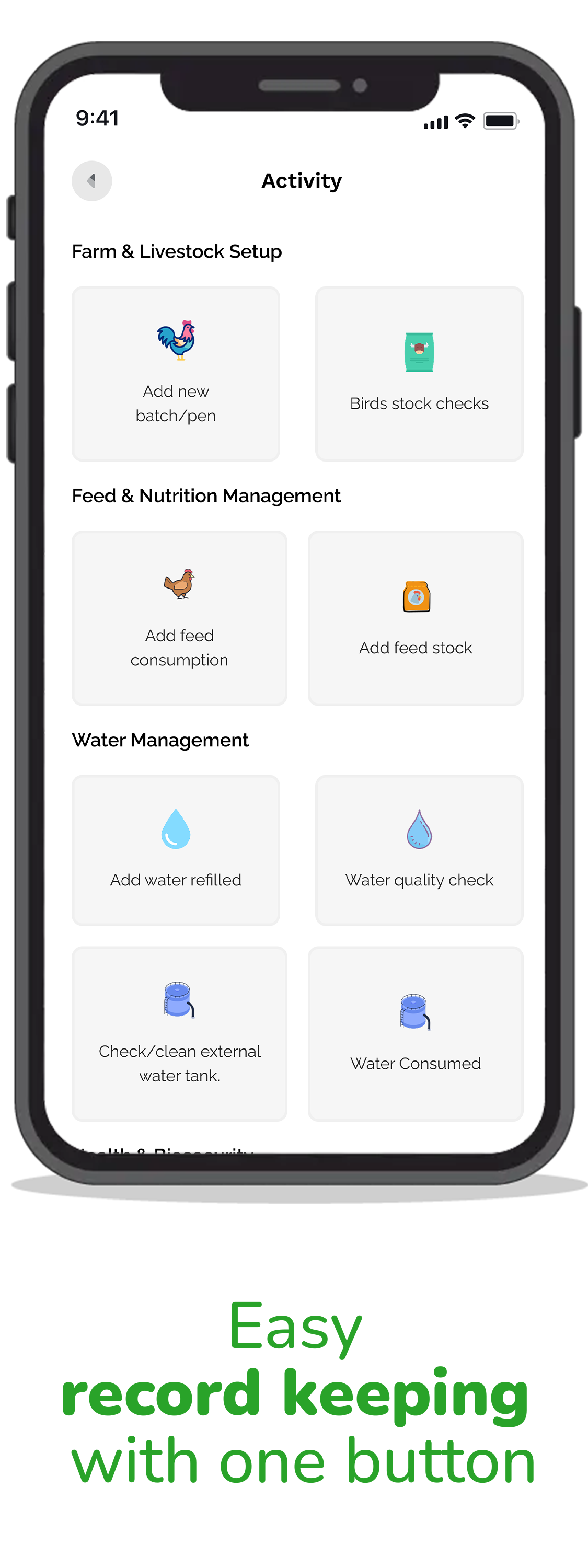 Log daily feed consumption, water quality checks, and stock levels. Get automated reminders when feed is running low or water tanks need cleaning.